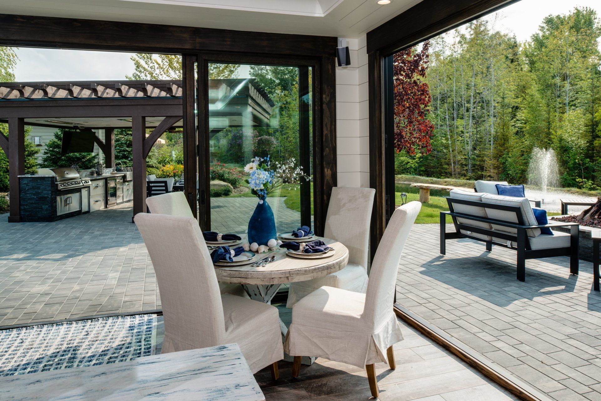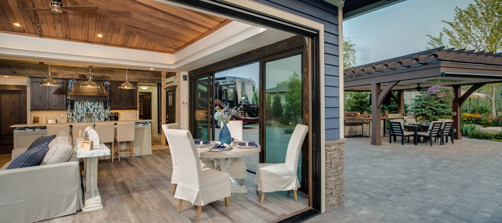 Northern Michigan doesn’t pull any punches when it comes to nature. Dense pine forests and the expansive Lake Michigan make for beautiful sights and a rich getaway. Located just across the road from the Fochtman Nature Preserve and situated between Round and Crooked Lakes, Hearthside Grove is a quiet, luxurious getaway that beautifully blends natural beauty with glorious amenities.